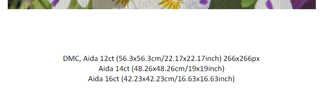 -New: Cover page shows variants of your pattern in 12ct, 14ct, 16ct AIDA - in each case the size is calculated in cm/inch,